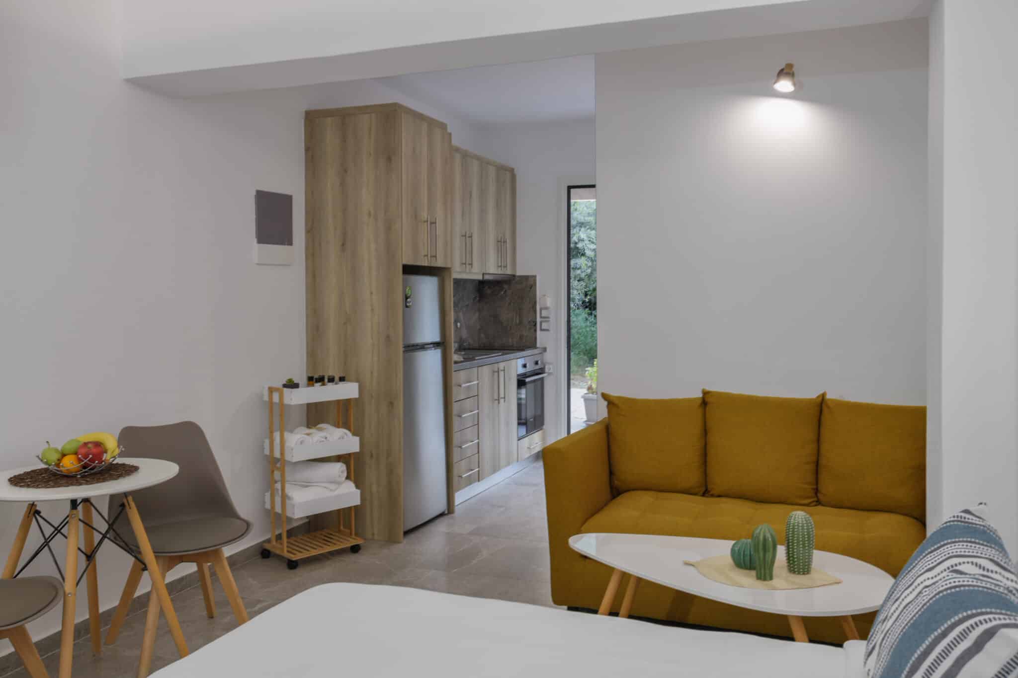 At Semes Luxury Apartments, we offer a selection of elegantly designed apartments and studios that provide a blend of comfort and convenience. Each unit features a private entrance, spacious interiors, and a modern aesthetic that enhances your stay. Enjoy your morning coffee on a private balcony, unwind in the cozy seating area, or prepare a meal in a fully equipped kitchen. Whether you’re here for relaxation or adventure, our accommodations ensure a memorable experience just minutes away from the sparkling waters of Hersonissos.